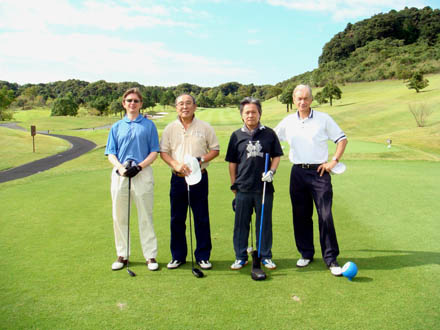 Starting just before 9:00 a.m., the three groups completed the first nine smoothly, pausing over lunch to exchange the usual golf tales — fine shots, unlucky bounces, missed putts, bumpy greens — and news of two remarkable chip-ins by Takahisa Hashimoto. Fuji Ichihara’s hearty lunch offerings were much appreciated, as were the early beers and sake taken in preparation for the afternoon round.